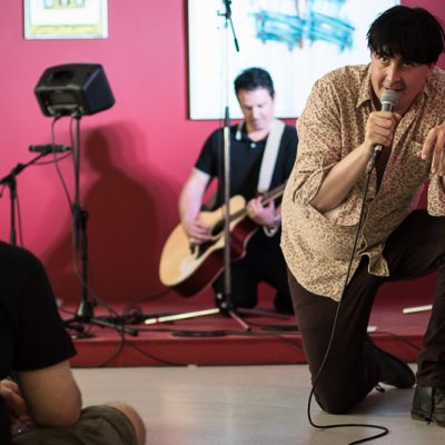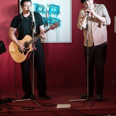 After 13 years on the largest festival and concert stages in the world and in time for their next tour, the legendary British rock band Art Brut is making their long overdue gallery concert debut as a duo with a unique acoustic performance. Vocalist and mastermind Eddie Argos and guitarist Ian Catskilkin will be playing the biggest Art Brut hits and first excerpts from their next album at the gallery gugging. Anyone who has seen the band live before will be surprised. Top Of The Pops!