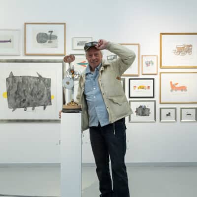 Die Auswahl der Werke aus Gugging führte schnell zur Vision, Maurers persönliche Wegbegleiter mit den Guggingern, ihren nationalen und internationalen Kolleg:innen sowie seiner Kunst gegenüberzustellen. So entstand ein spannender Dialog, ein künstlerisches Wechselspiel: curated by juergen maurer – höchst persönlich. So werden etwa Werke von Juergen Maurer gemeinsam mit den Fingermalereien des französischen Art Brut-Künstlers Michel Nedjar ausgestellt. Die Holzdrucke von Herbert Brunner, der für Juergen Maurer als Lehrer, väterlicher Freund und wichtiger Wegbegleiter fungierte, sind gemeinsam mit den Werken des Schweizer Künstlers François Burland zu sehen. Die Arbeiten des Kärntner Malers Peter Krawagna, die Maurer seit seiner Jugend begleiten, treffen auf die Welt des Gugginger Künstlers Helmut Hladisch. Beide Künstler, wie Maurer es treffend beschreibt, tanzen auf ihre eigene Weise mit der Wirklichkeit und harmonieren auf besondere Weise. In der galerie gugging wird es zudem eine Technikecke geben, denn unser Gastkurator ist seit jeher von der Fortbewegung auf motorisierten Zweirädern und dem damit verbundenen Freiheitsgefühl fasziniert. „Die Autonomie und das selbstbestimmte, beschleunigte Fortkommen machen mich seit jeher glücklich und beruhigen meinen Geist.“ erzählt der Mitbesitzer einer eigenen Autowerkstatt. Diese Liebe teilt Juergen Maurer auch mit einigen Gugginger Künstler:innen, darunter Laila Bachtiar, Günther Schützenhöfer, Leonard Fink und Jürgen Tauscher, deren Werke ebenfalls zu sehen sein werden. Auch David Staretz, ein weiterer jahrelanger Wegbegleiter, darf hier nicht fehlen. Staretz ist unserem Gastkurator nicht nur durch seine feinsinnige journalistische Arbeit für die Zeitschrift Autorevue ans Herz gewachsen, sondern auch durch seine kleinen, filigranen Maschinen – die sich der Schwerkraft nicht fügen und ebenfalls gezeigt werden neben weiteren Künstler:innen.