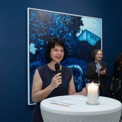 galerie gugging-Direktorin Nina Katschnig ist beeindruckt von der fokussierten Ausrichtung des gerade mal 24-jährigen Künstlers, der seit Herbst 2025 von ihrer Galerie vertreten wird: „Marko Djurdjevic ist mit seinem ganzen Sein Künstler! Die Zielstrebigkeit, mit der er seinen Weg beschreitet, ist einzigartig. Marko ist täglich am Malen und verkaufte sogar sein Motorrad, nur um sich seinen Katalog finanzieren zu können. – Wenn in Markos Leben einmal etwas nicht so glatt läuft, fährt er in sein Atelier in Klosterneuburg und verarbeitet seine Emotionen in einem neuen Ölbild und transformiert so die negative Energie in etwas Berührendes das bleibt.“ Die dabei entstehende Tiefe, gepaart mit den autobiographischen Motiven des Künstlers im markanten Blau, ist in den Arbeiten fühlbar und macht den unverwechselbaren Charme von Djurdjevics Kunst aus. Neben den kleinen und großformatigen Ölbildern, nimmt der Holzdruck mittlerweile eine zentrale Stellung im Werk des Künstlers ein. Djurdjevic eignete sich den Holzschnitt in der Tradition von Werner Berg vor rund zweieinhalb Jahren autodidaktisch an und kaufte hierfür eigens eine eigene Druckerpresse aus Deutschland. Ein weiterer Beweis für die beeindruckende Entschlossenheit mit welcher der junge Künstler seinem Herzen folgt und seine Vision in die Tat umsetzt.