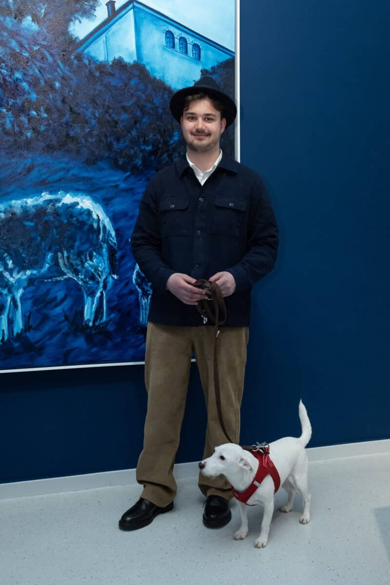 Der 2001 in Wien geborene Künstler Marko Djurdjevic, lebt und arbeitet in Klosterneuburg und erlernte die Malerei sowie später das Holzschnittverfahren autodidaktisch. Mit knapp fünf Jahren kam er in das Kinderheim Klosterneuburg, wo er bis zu seinem achtzehnten Lebensjahr lebte. Diese prägenden Jahre bilden die zentrale Grundlage seines autobiografisch geprägten Œuvres. In großformatigen Ölgemälden verarbeitet der Künstler Themen wie Zugehörigkeit, Einsamkeit, Geborgenheit und Aufbruch. Neben Natur & biographischen Orten, spielen Tiere dabei eine wesentliche Rolle – als frühe Bindungen – wie etwa ein von der Mutter verstoßenes Lamm, das er einst im Heim liebevoll mit der Flasche aufzog. Ein wiederkehrenden Motiv ist auch Djurdjevics Hund Vincent, den der Künstler aus einem Tierheim auf Sardinien adoptierte und der zum ständigen Begleiter und Teil des künstlerischen Alltags des Künstlers wurde.