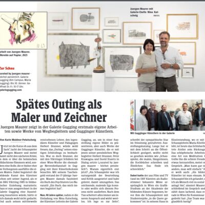 Mit „curated by juergen maurer – höchst persönlich“ erwartet Sie eine besondere Premiere in der galerie gugging. Freuen Sie sich auf Malereien und Zeichnungen von Juergen Maurer, die erstmals in einer Galerie gezeigt werden. Die exklusive Auswahl des beliebten österreichischen Schauspielers zeigt Werke seiner persönlichen Wegbegleiter wie Peter Krawagna neben den Gugginger Künstler:innen und ihren nationalen & internationalen Kolleg:innen.